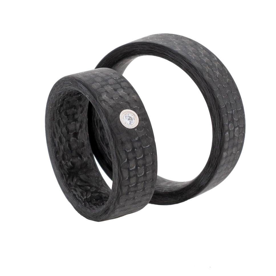 Trauringe aus Carbon mit Brillant