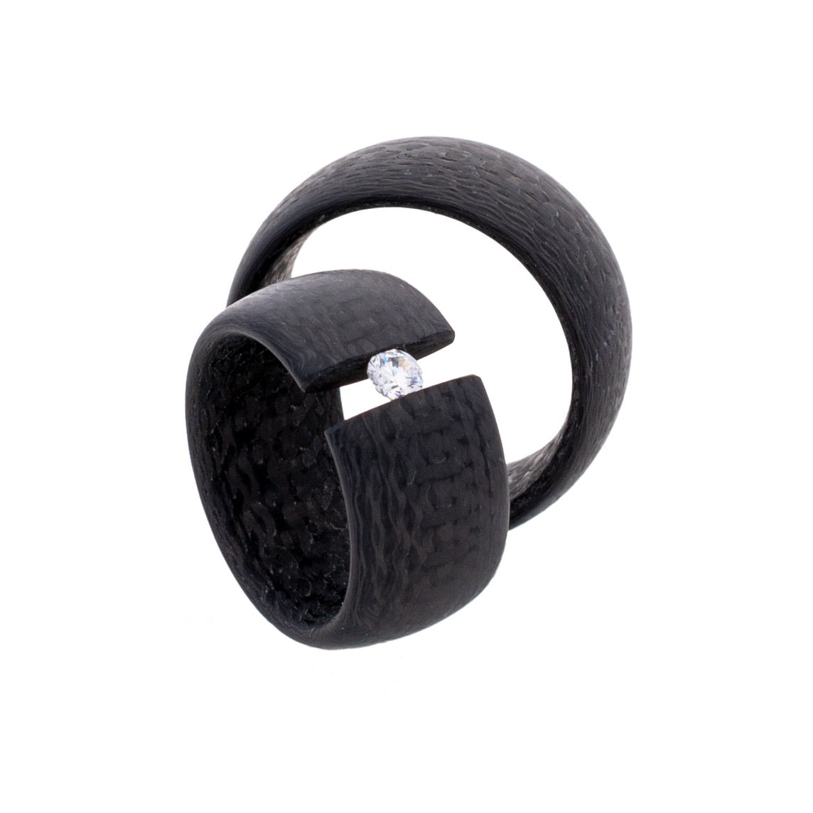 Trauringe aus Carbon mit Zirkonia oder Brillant