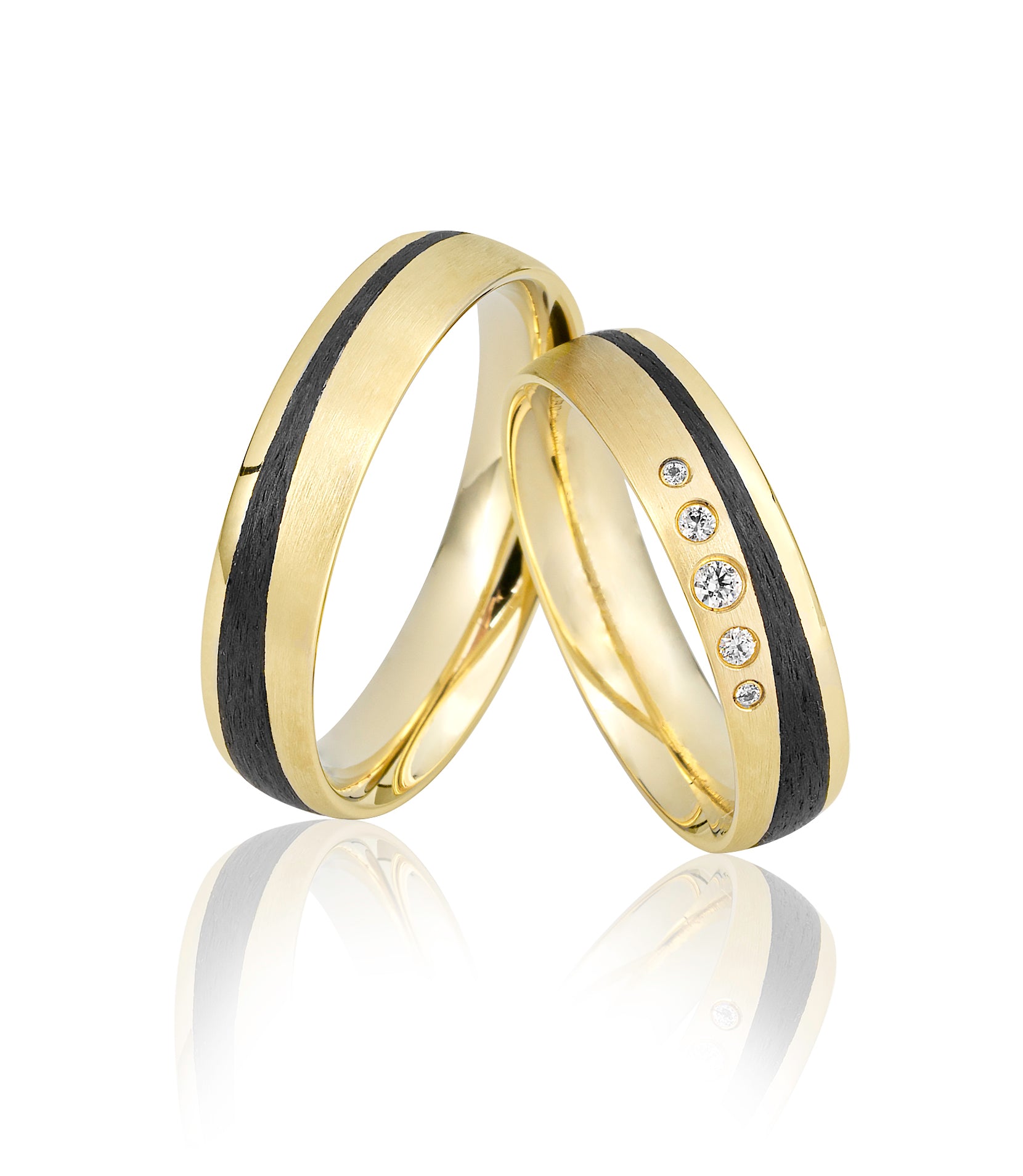 Trauringe/Partnerringe Carbon Gelbgold mit 5 Brillanten